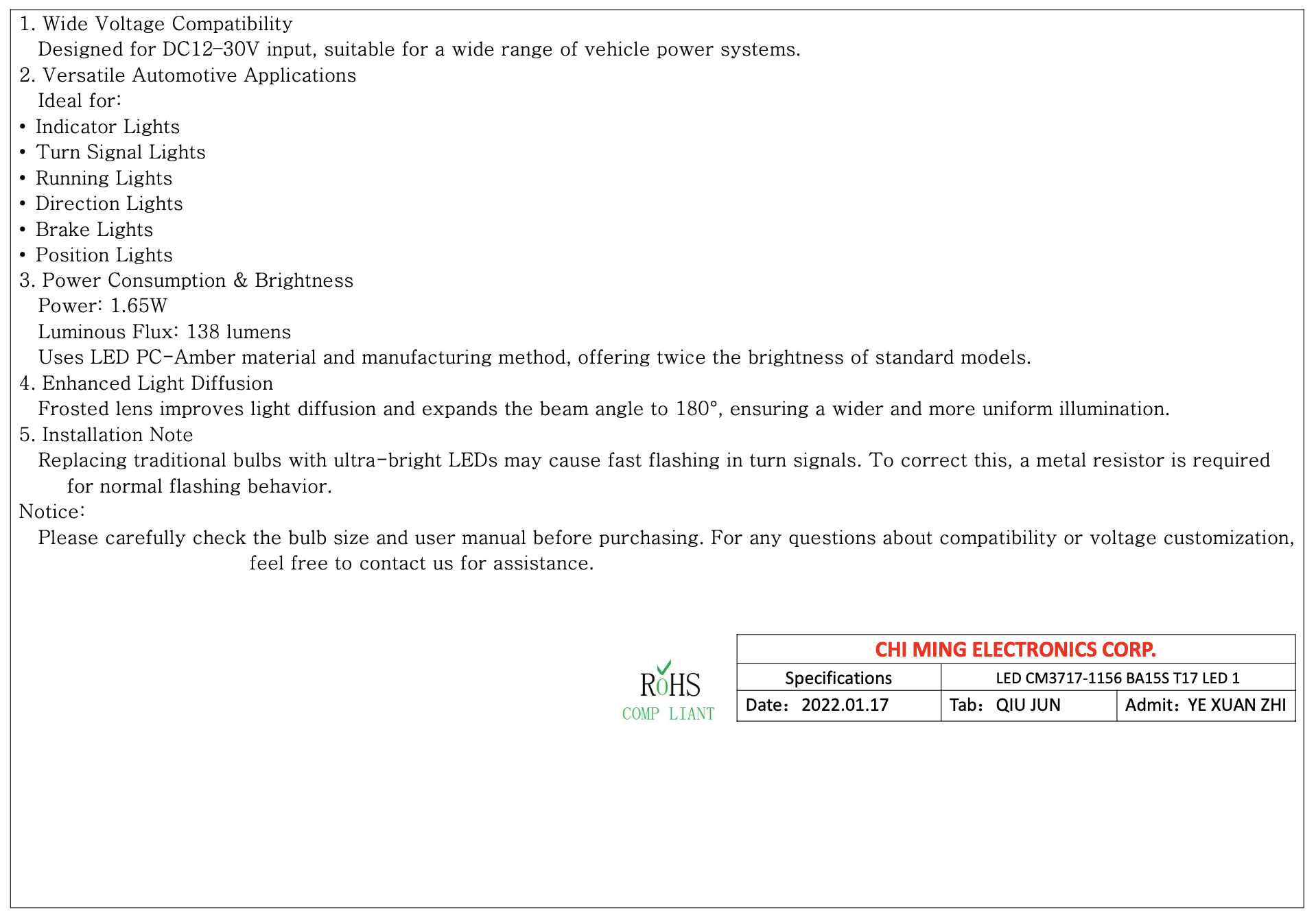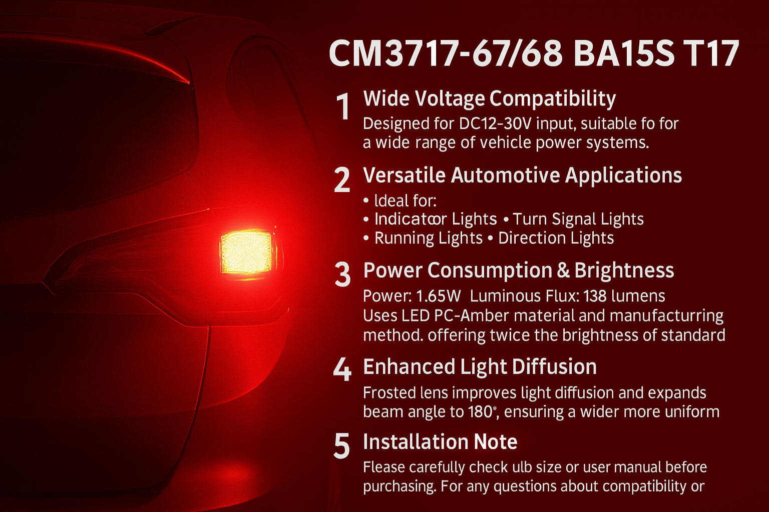 - Uses LED PC-Amber material and manufacturing method, offering twice the brightness of standard models.