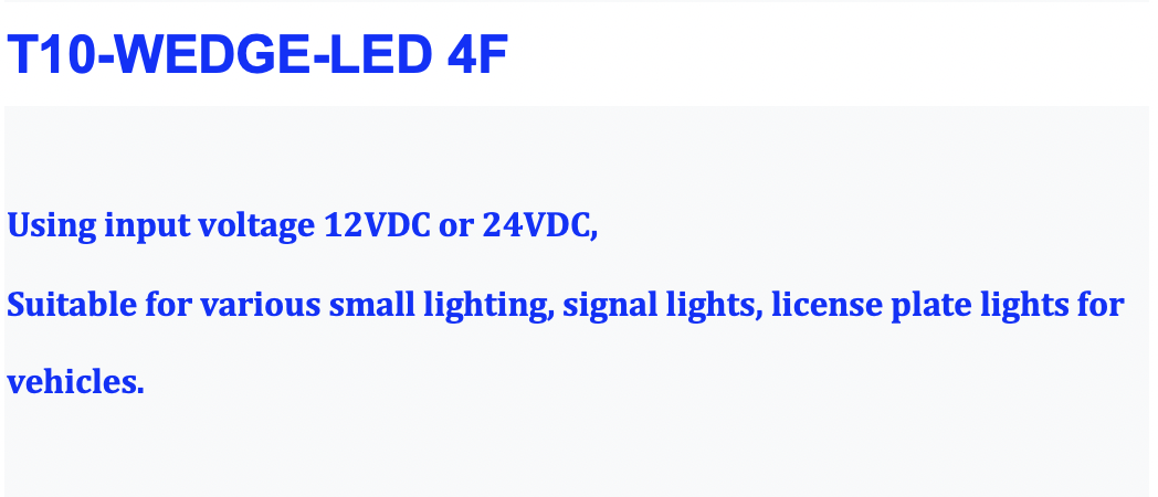 • Car LED(Truck LED) ,Vehicle rear lights. position lights .Reading Light. Side Light.