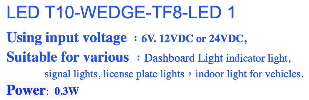 • LED T10-WEDGE-TF8-LED 1/