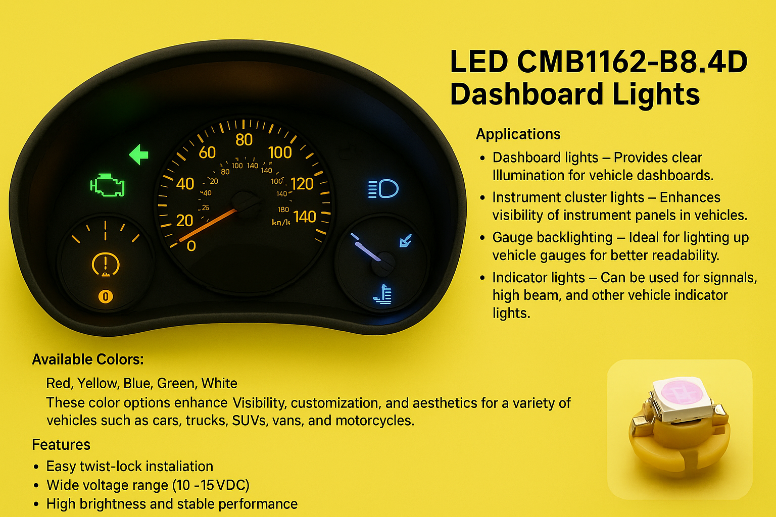 - Instrument cluster lights – Enhances visibility of instrument panels in vehicles.