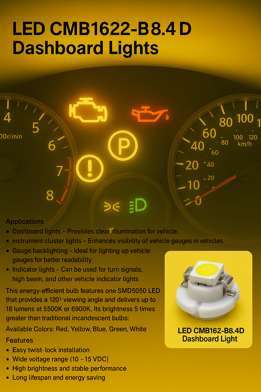 - Dashboard lights – Provides clear illumination for vehicle dashboards.