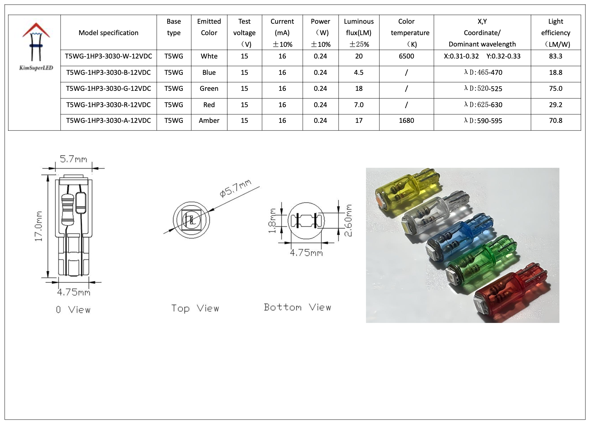 * Standard T5 size – Easy replacement for most dashboard light sockets.