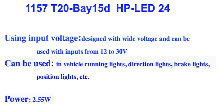 • Car LED(Truck LED) ,Vehicle rear lights. position lights .Reading Light. Side Light.