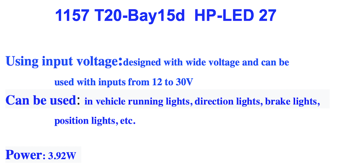 • Car LED(Truck LED) ,Vehicle rear lights. position lights .Reading Light. Side Light.