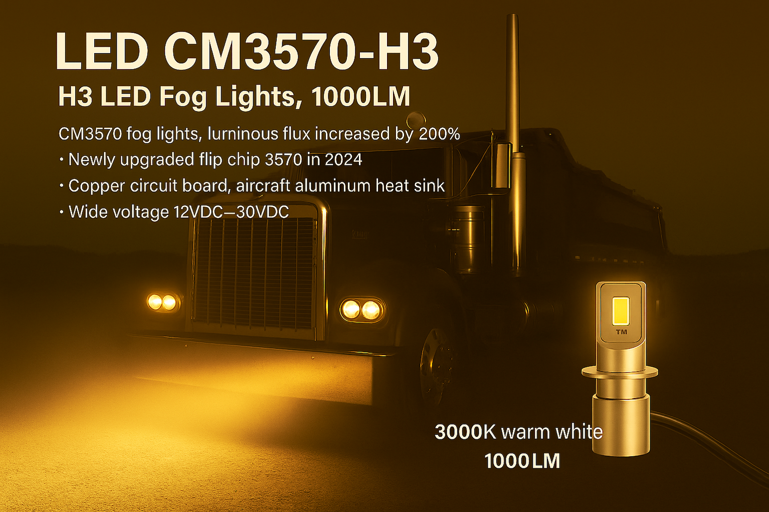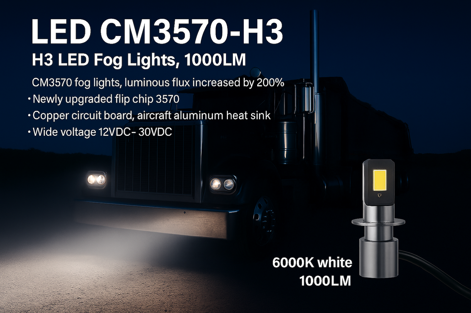 1.CM3570 H3 LED Fog Lights, 1000LM CM3570 fog lights, luminous flux increased by 200% to enhance visibility,