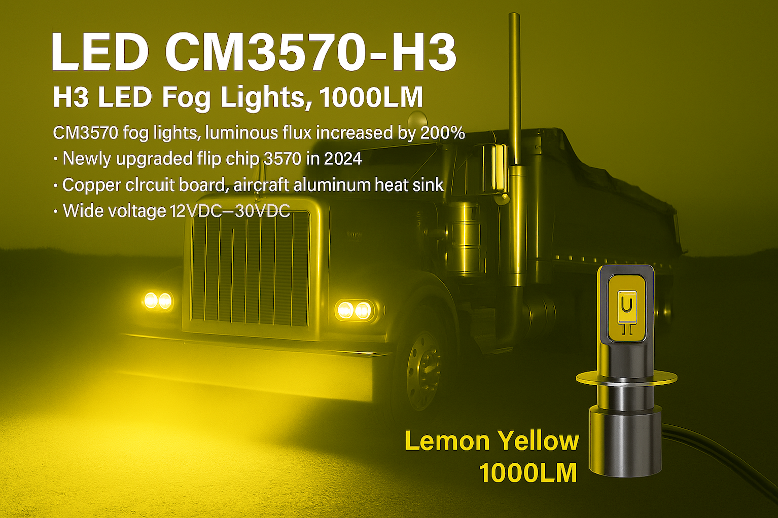 , newly upgraded flip chip 3570, CM3570 H3 fog lights are suitable for cars, trucks, and SUVs.