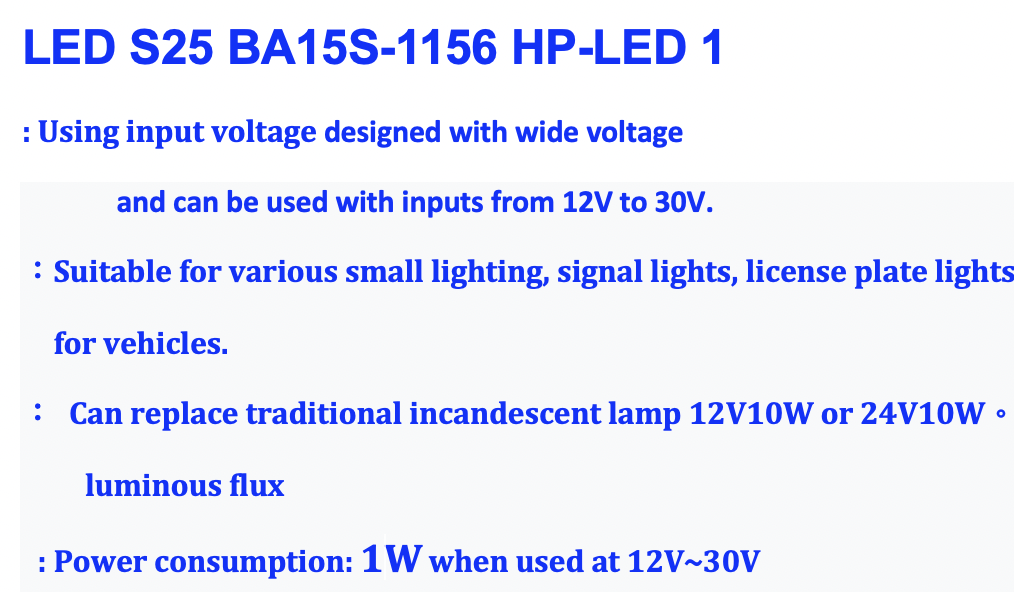 • Car LED(Truck LED) ,Vehicle rear lights. position lights .Reading Light. Side Light.