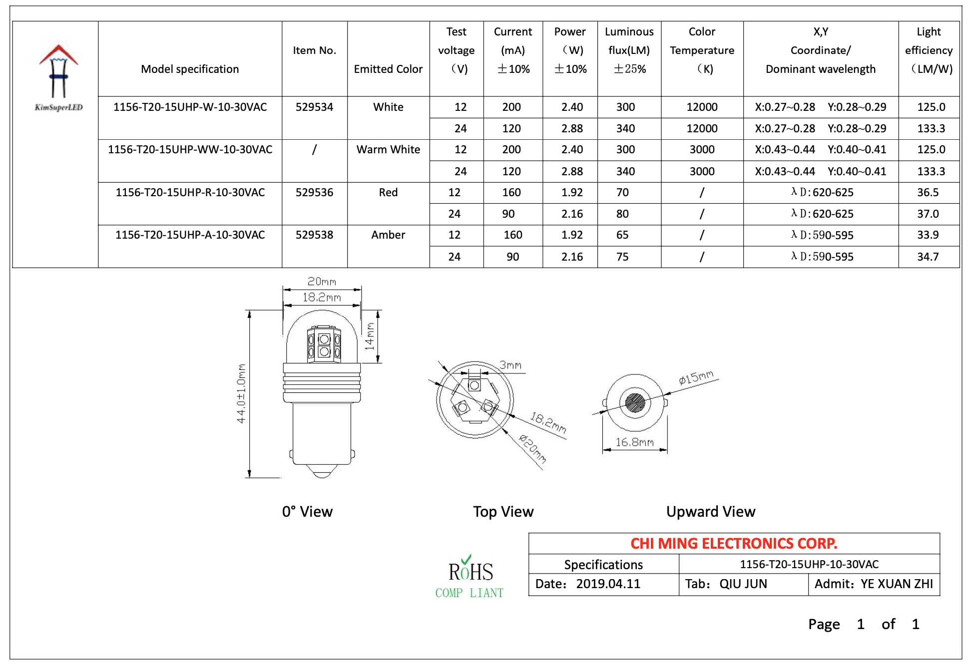 ^7. CM4420 1157 T20-HP LED 15 RED Light