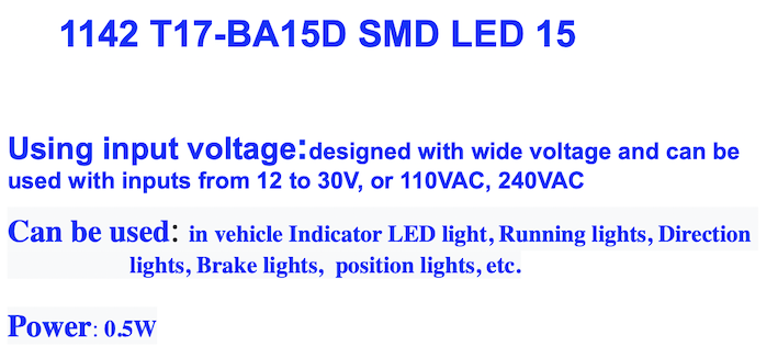 • Car LED(Truck LED) ,Vehicle rear lights. position lights .Reading Light. Side Light.