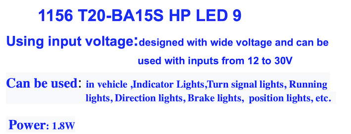 • Car LED(Truck LED) ,Vehicle rear lights. position lights .Reading Light. Side Light.