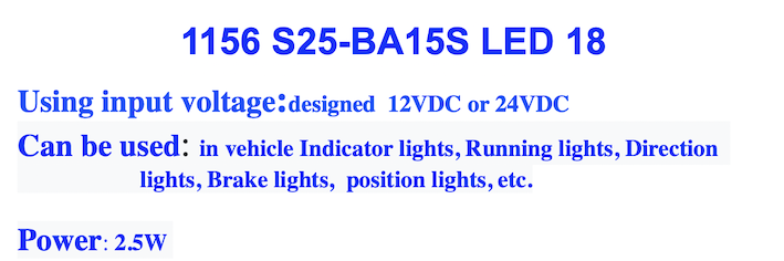 • Car LED(Truck LED) ,Vehicle rear lights. position lights .Reading Light. Side Light.