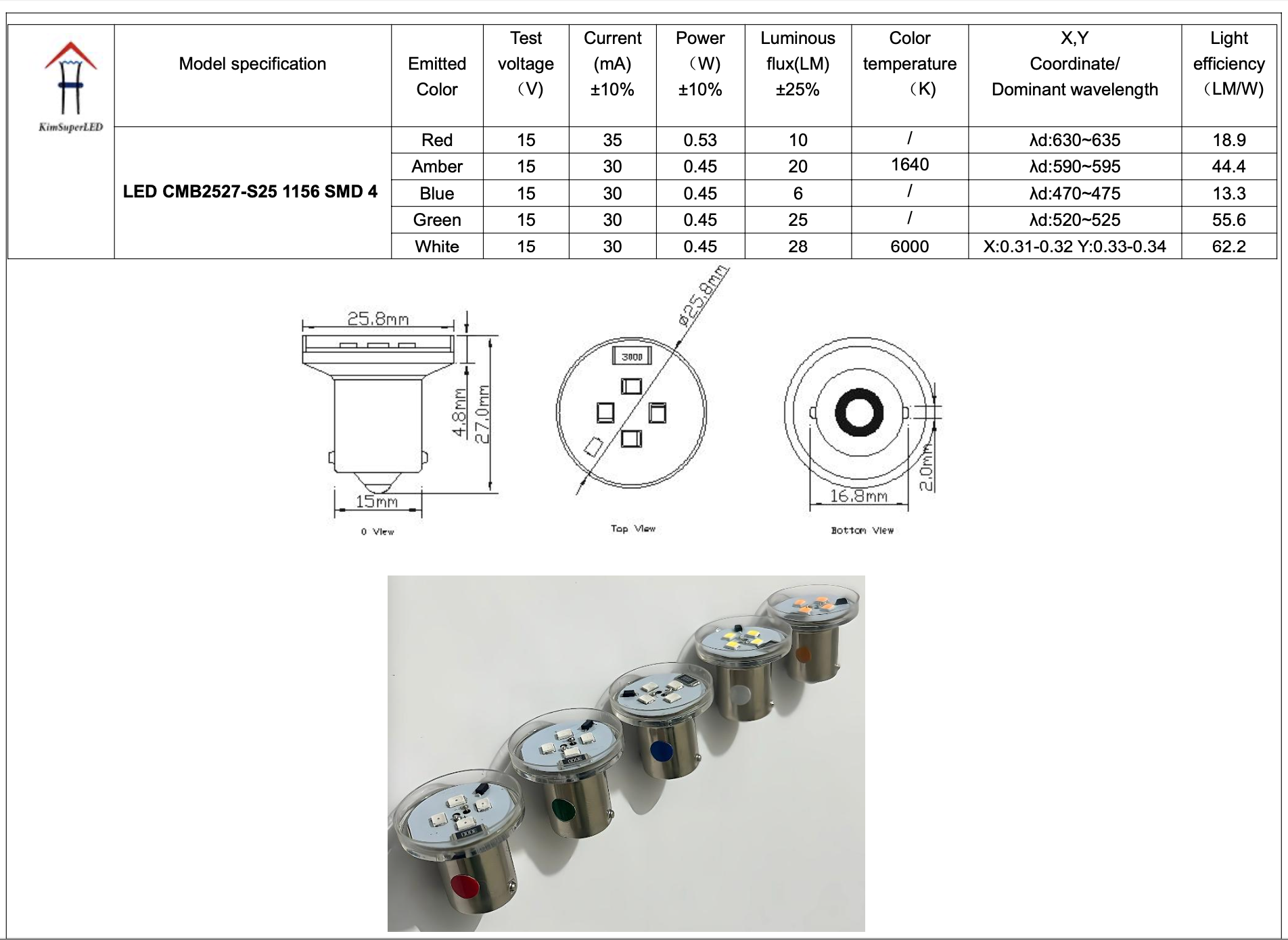 L.E.D. CMB2527-S25 1156 S.M.D 4
