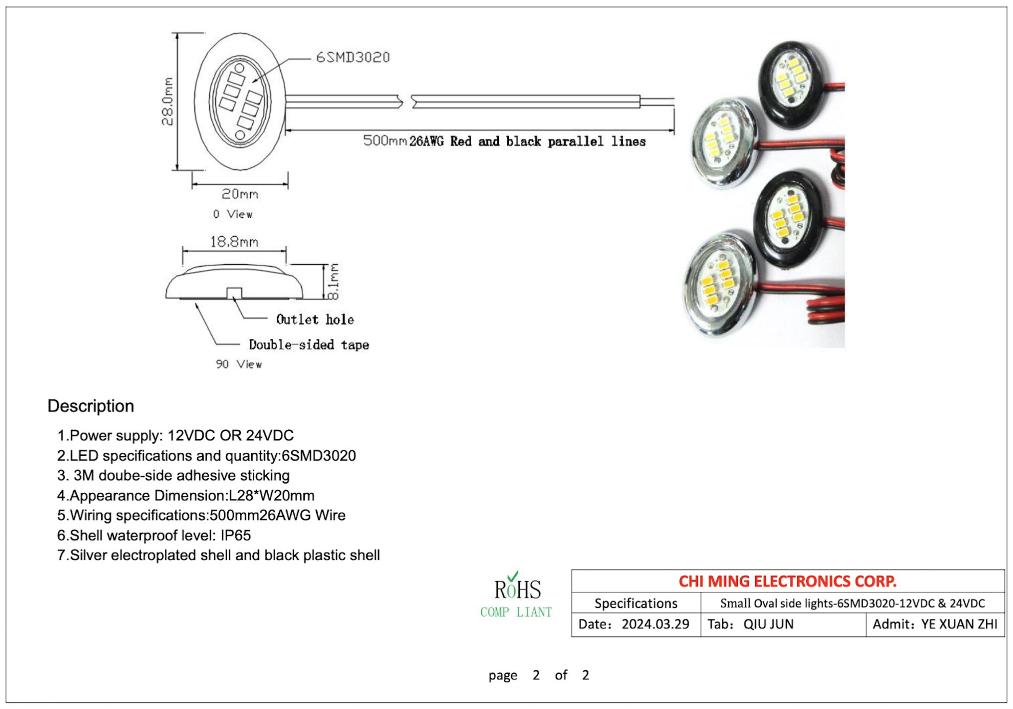 2. LED Specifications: Equipped with 6 high-performance SMD3020 LED, delivering efficient, bright, and reliable lighting performance for enhanced visibility.